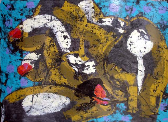 Lavallén realiza una abstracción que en lugar de licuar el instinto lo potencia. Los torsos escorzados son marcados por la rojiza carne de los pezones y las vaginas como rosas encarnadas. Un rojo carmesí pende de un casi inidentificable torso monumental de mujer.